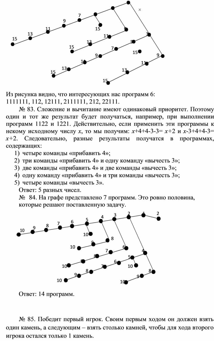 № 82. На дереве команде 1 (+2) будут соответствовать ребра, идущие влево; ребра, идущие вправо, будут соответствовать команде 2 ( 3).