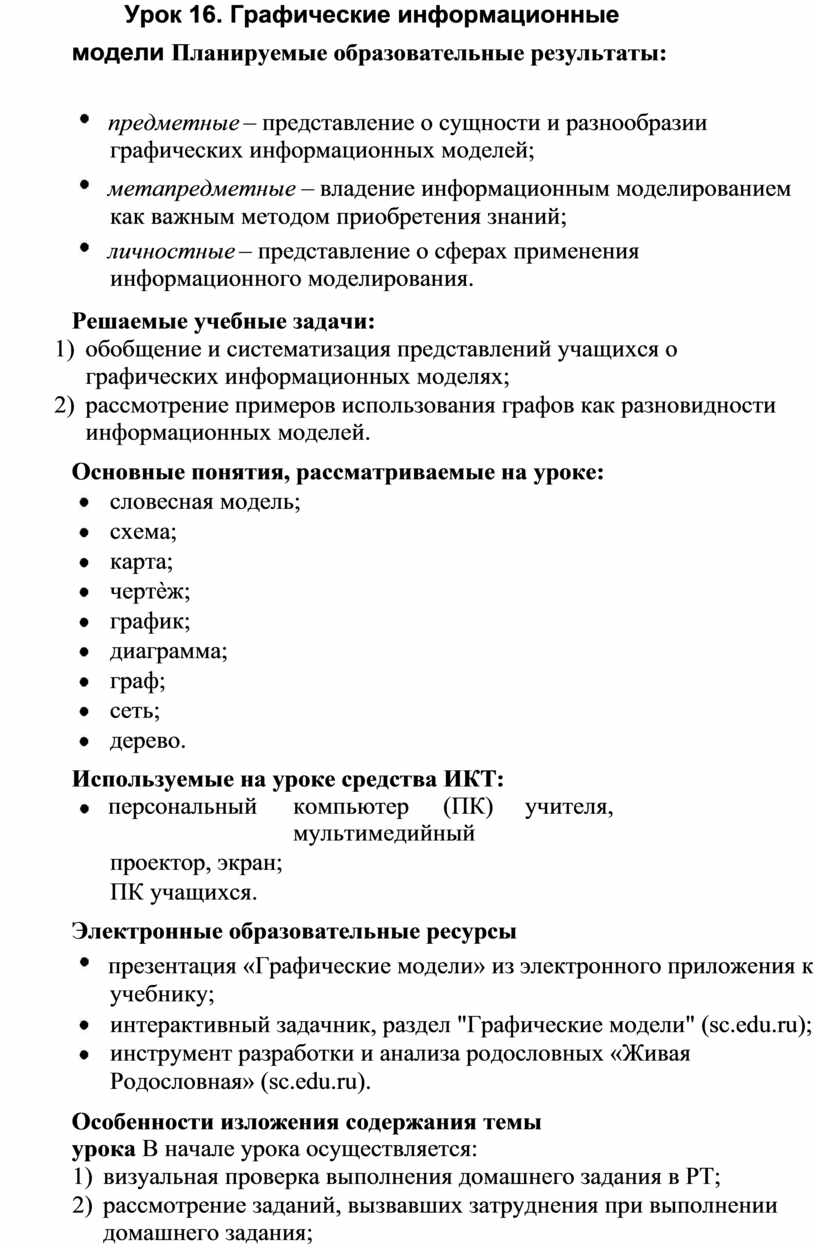 Урок 16. Графические информационные модели Планируемые образовательные результаты: