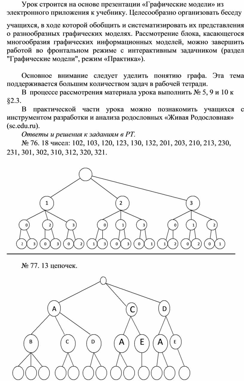 2) рассмотрение примеров использования графов как разновидности информационных моделей.
