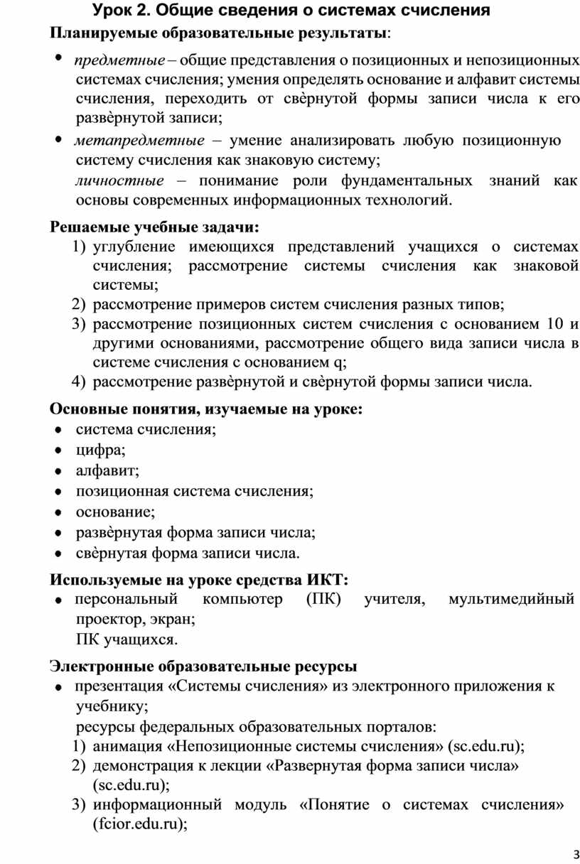Урок 2. Общие сведения о системах счисления Планируемые образовательные результаты: