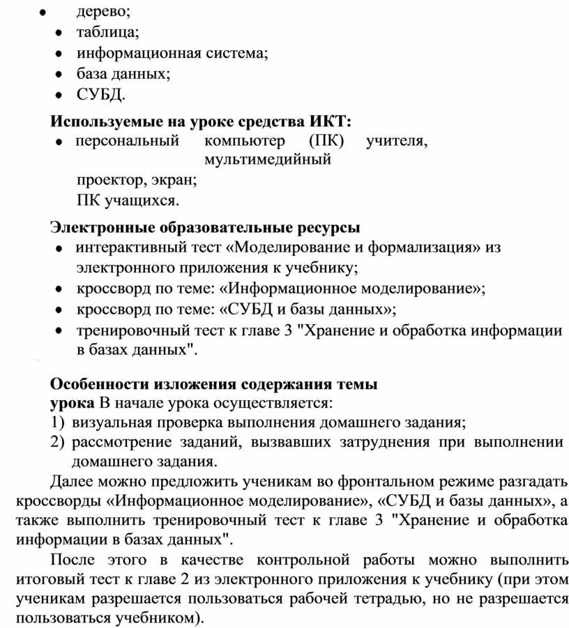 1) обобщение и систематизация представлений учащихся о моделировании и информационных моделях;