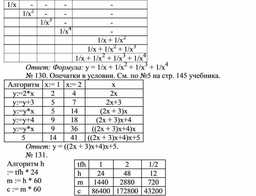 № 132. Ответ: y = x*7*500*3*28*25,4/10/100/1000.