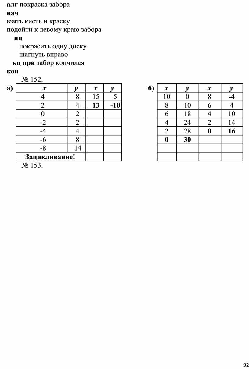 (короткие) циклические алгоритмы для формального исполнителя с заданной