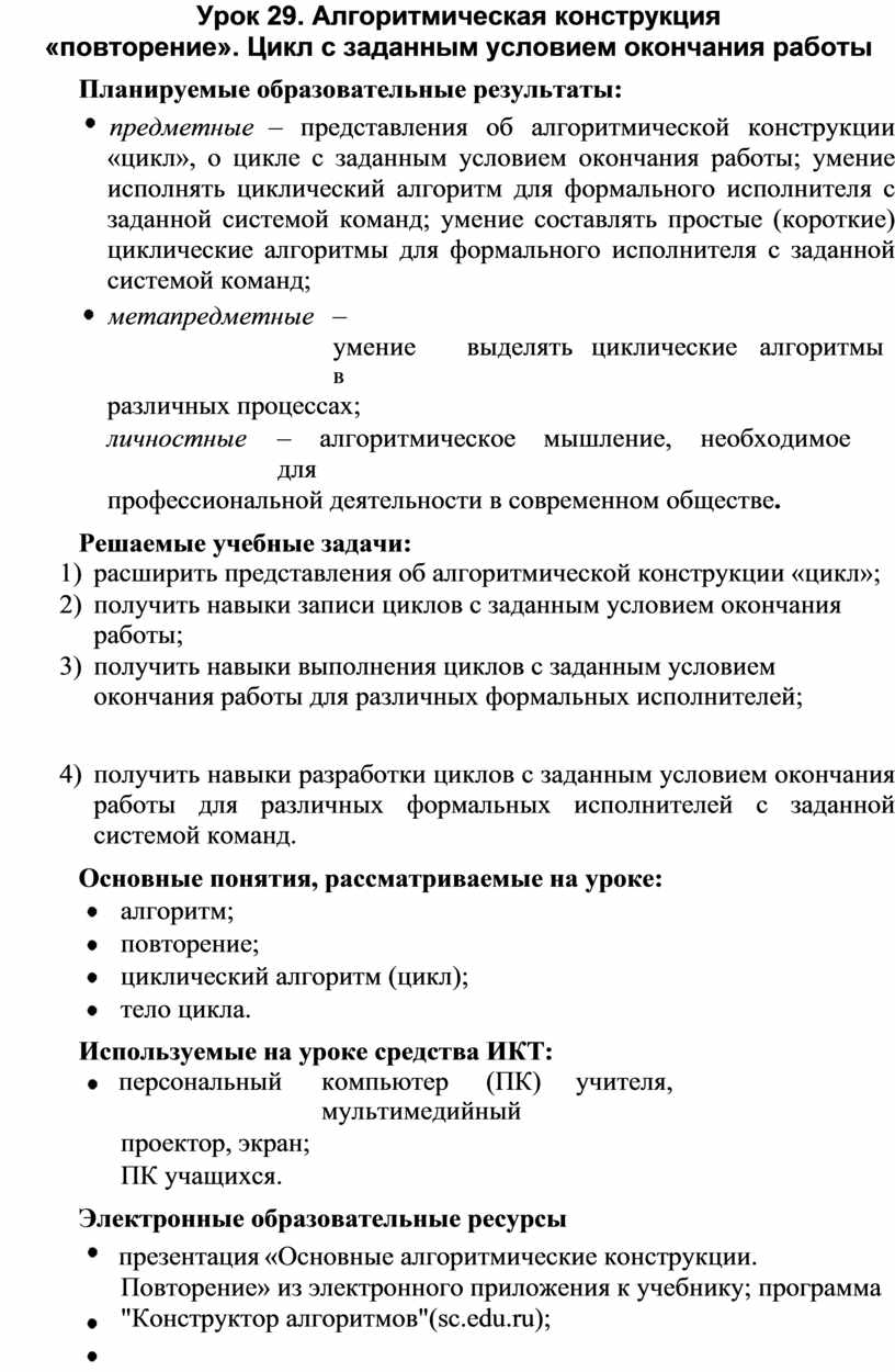 Урок 29. Алгоритмическая конструкция