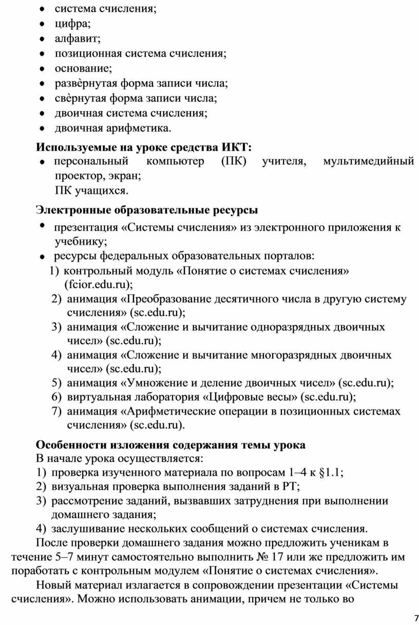 7) анимация «Арифметические операции в позиционных системах счисления» (sc.edu.ru).