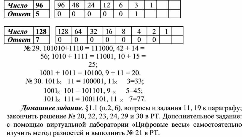 4) знакомство с операциями сложения и умножения в двоичной системе счисления.