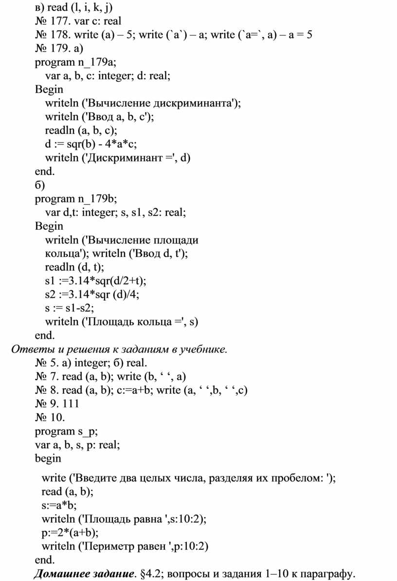 № 178. write (a) – 5; write (`a`) – a; write (`a=`, a) – a = 5
