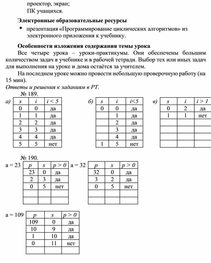 Все четыре урока – уроки-практикумы. Они обеспечены большим количеством задач в учебнике и в рабочей тетради. Выбор тех или иных задач для выполнения на уроке и дома остаѐтся за учителем.