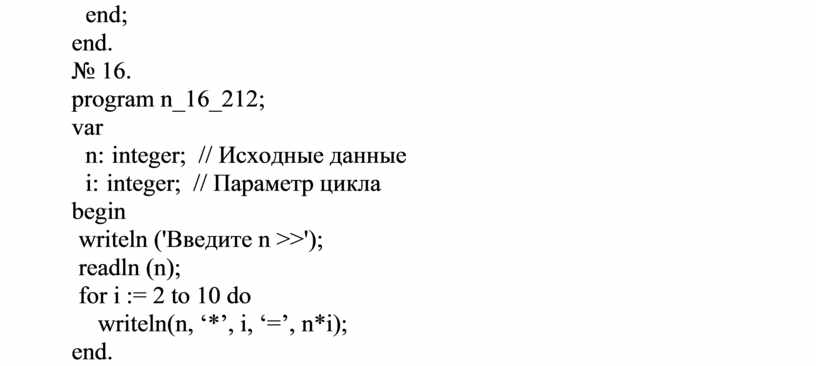 writeln(n, ‘*’, i, ‘=’, n*i);