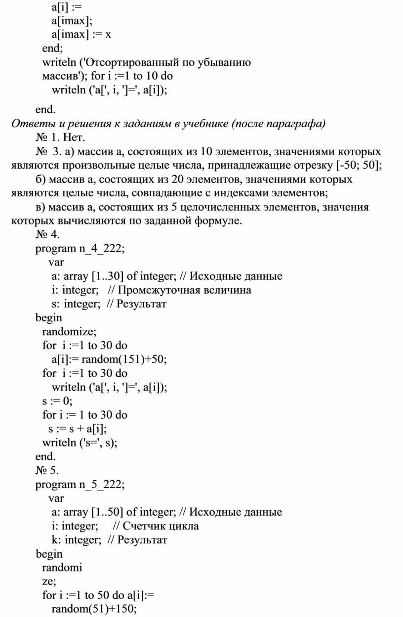 writeln ('Отсортированный по убыванию массив'); for i :=1 to 10 do