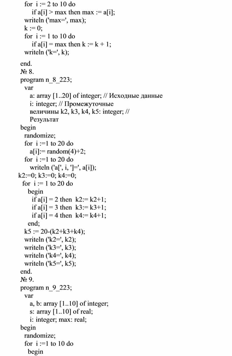 a: array [1..10] of integer; // Исходные данные i, max: integer; // Промежуточные величины