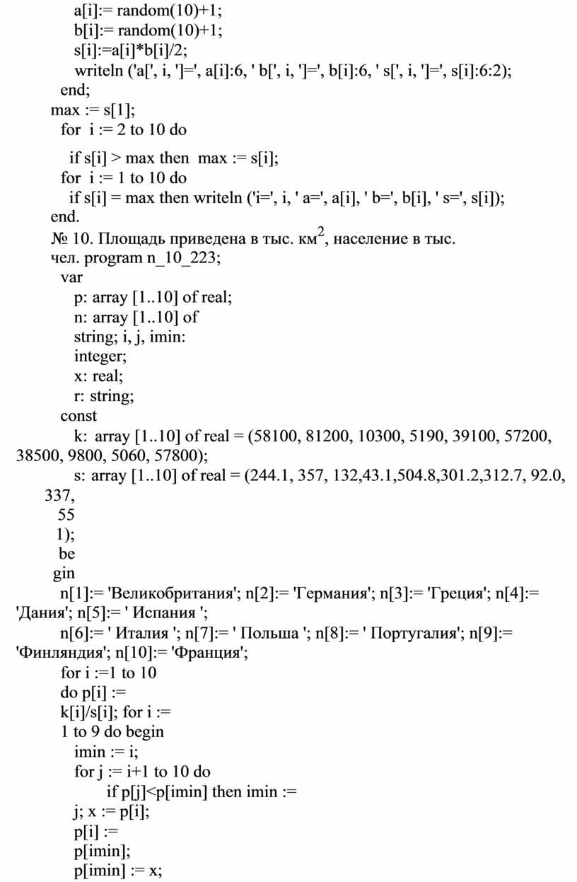 № 10. Площадь приведена в тыс. км2, население в тыс. чел. program n_10_223;