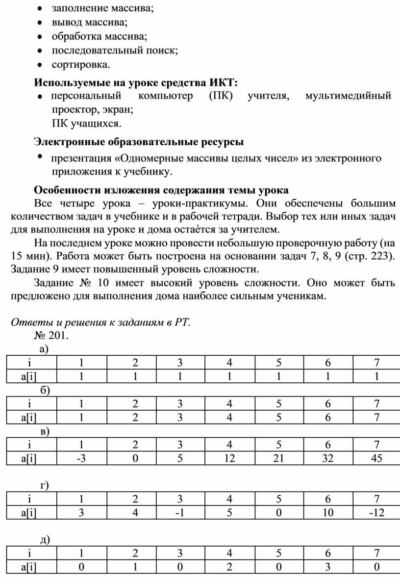 «Одномерные массивы целых чисел» из электронного приложения к учебнику.