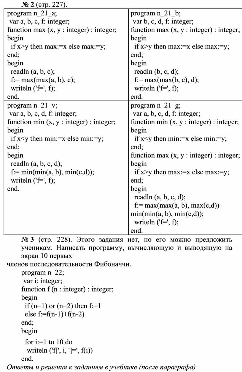 № 3 (стр. 228). Этого задания нет, но его можно предложить ученикам. Написать программу, вычисляющую и выводящую на экран 10 первых