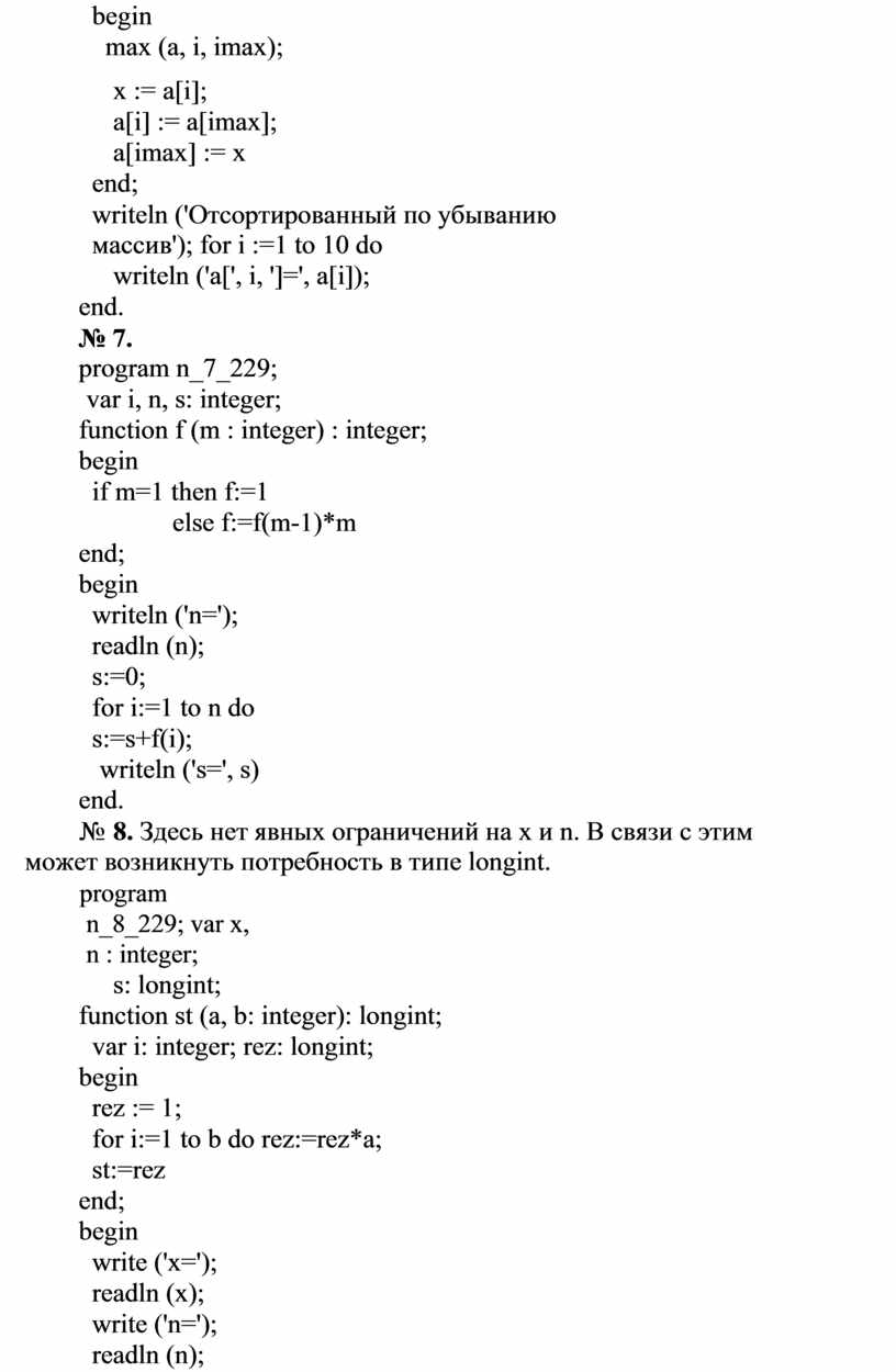 № 8. Здесь нет явных ограничений на x и n. В связи с этим может возникнуть потребность в типе longint.