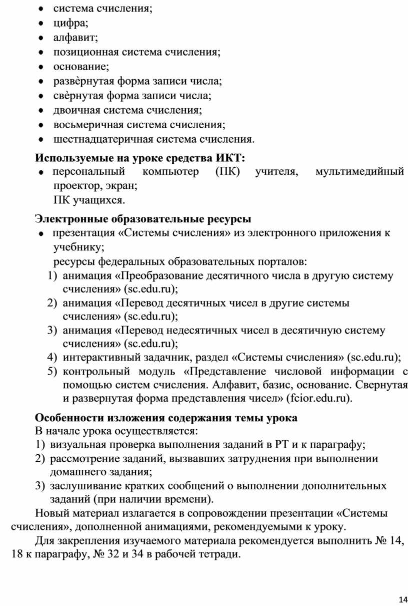 Новый материал излагается в сопровождении презентации «Системы счисления», дополненной анимациями, рекомендуемыми к уроку.