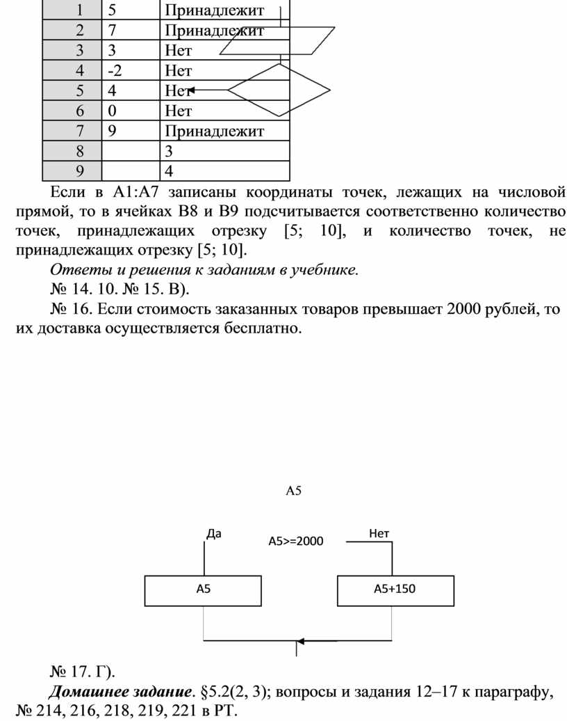 Если в А1:А7 записаны координаты точек, лежащих на числовой прямой, то в ячейках В8 и В9 подсчитывается соответственно количество точек, принадлежащих отрезку [5; 10], и количество точек, не принадлежащих отрезку [5; 10].