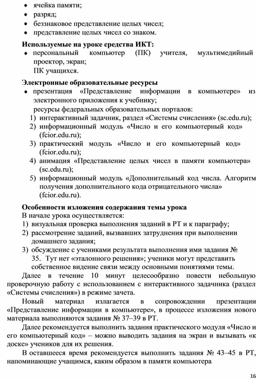 5) демонстрация связи между теоретическими знаниями (системы счисления) и их применением на практике.