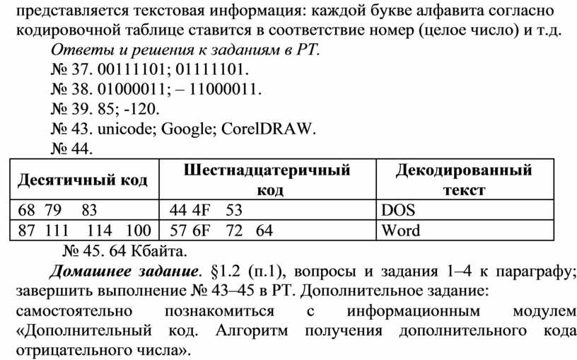 самостоятельно познакомиться с информационным модулем «Дополнительный код. Алгоритм получения дополнительного кода отрицательного числа».