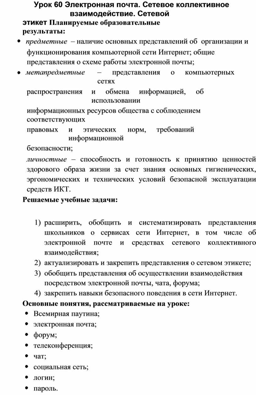Урок 60 Электронная почта. Сетевое коллективное