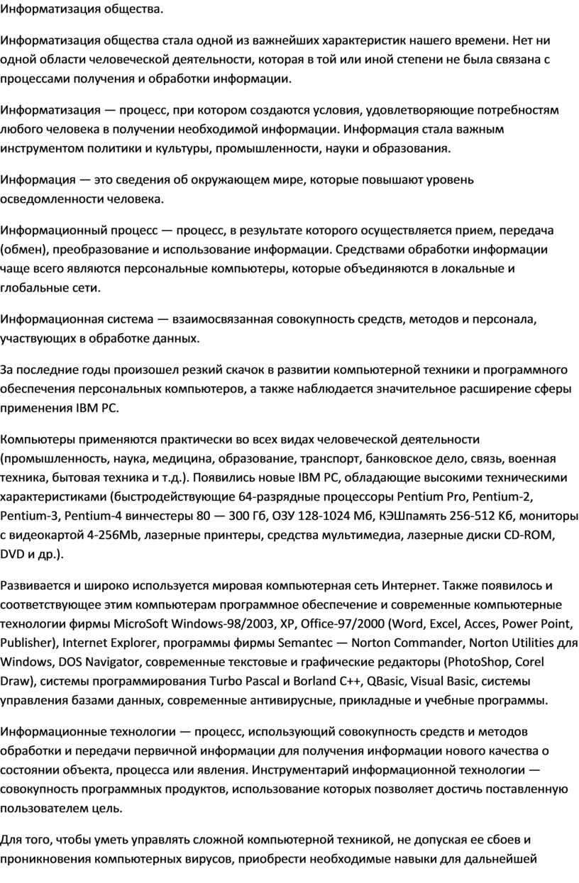 Информатизация общества стала одной из важнейших характеристик нашего времени. Нет ни одной области человеческой деятельности, которая в той или иной степени не была связана с процессами получения и обработки информации.