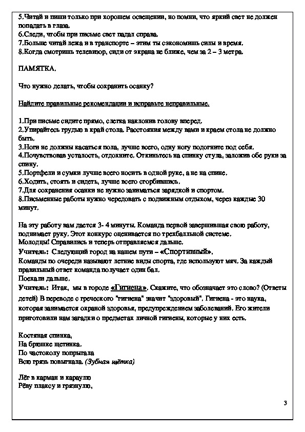 Учитель: Итак, мы в городе «Гигиена». Скажите, что обозначает это слово? (Ответы