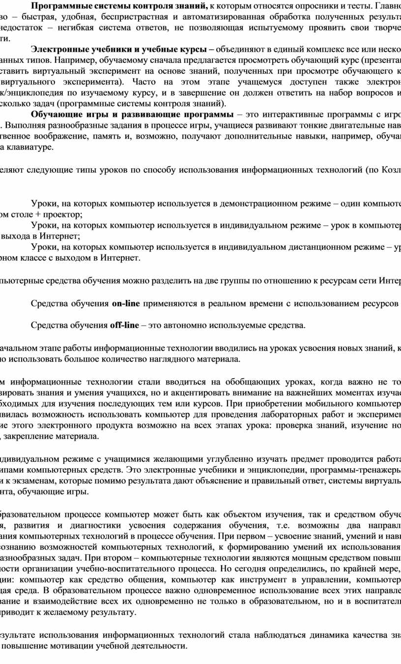 В отличие от обычных технических средств обучения информационные технологии позволяют не только насытить обучающегося большим количеством знаний, но и развить интеллектуальные, творческие способности учащихся, их умение самостоятельно приобретать новые знания, работать с различными источниками информации.