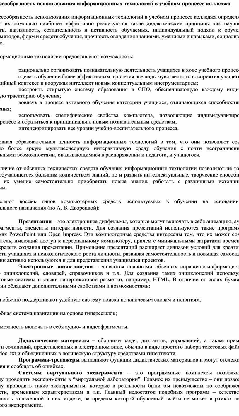 Целесообразность использования информационных технологий в учебном процессе колледжа