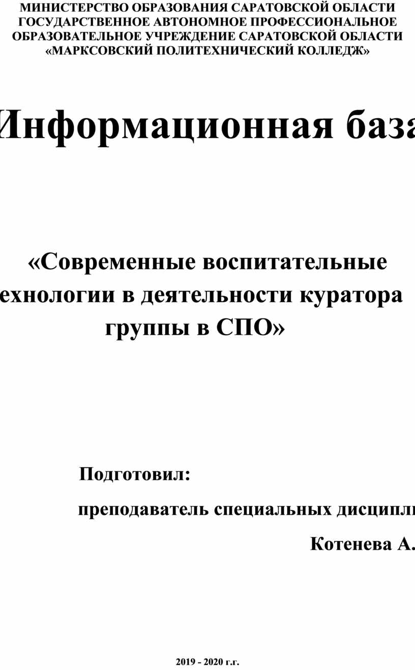 «Современные воспитательные технологии в деятельности куратора группы в СПО»