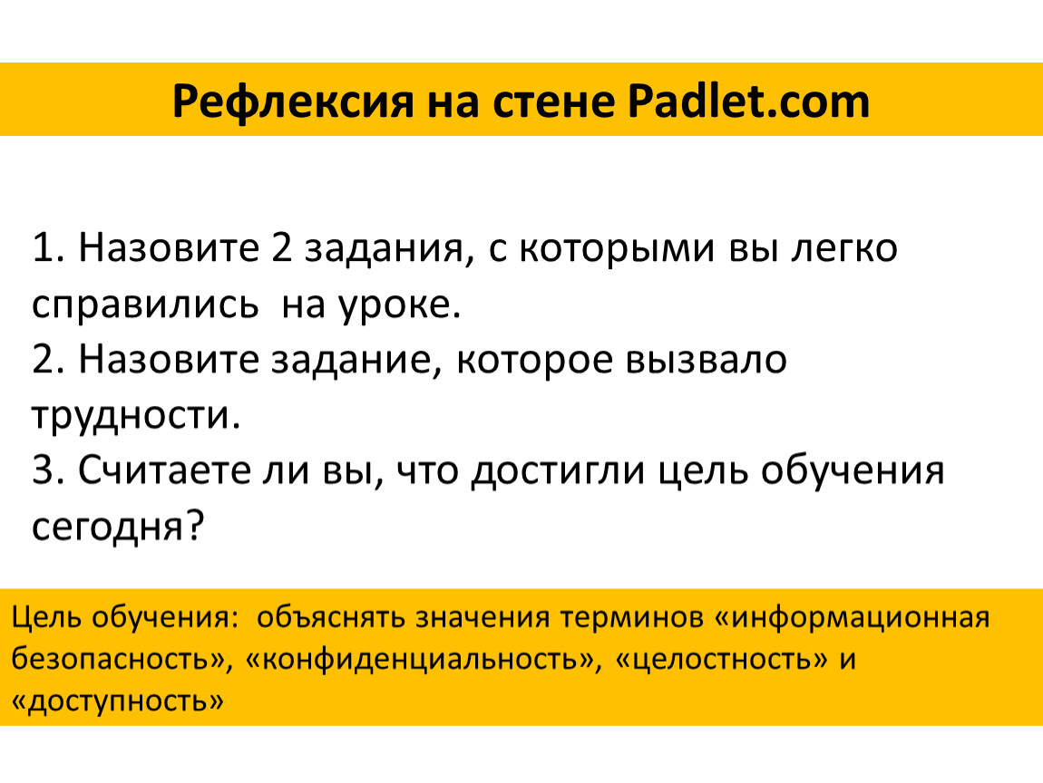 Рефлексия на стене Padlet.сom