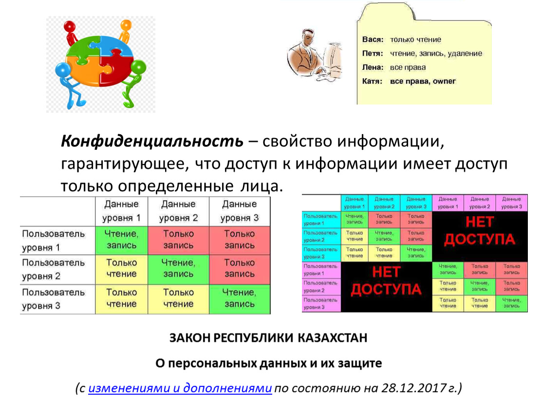 Конфиденциальность – свойство информации, гарантирующее, что доступ к информации имеет доступ только определенные лица.