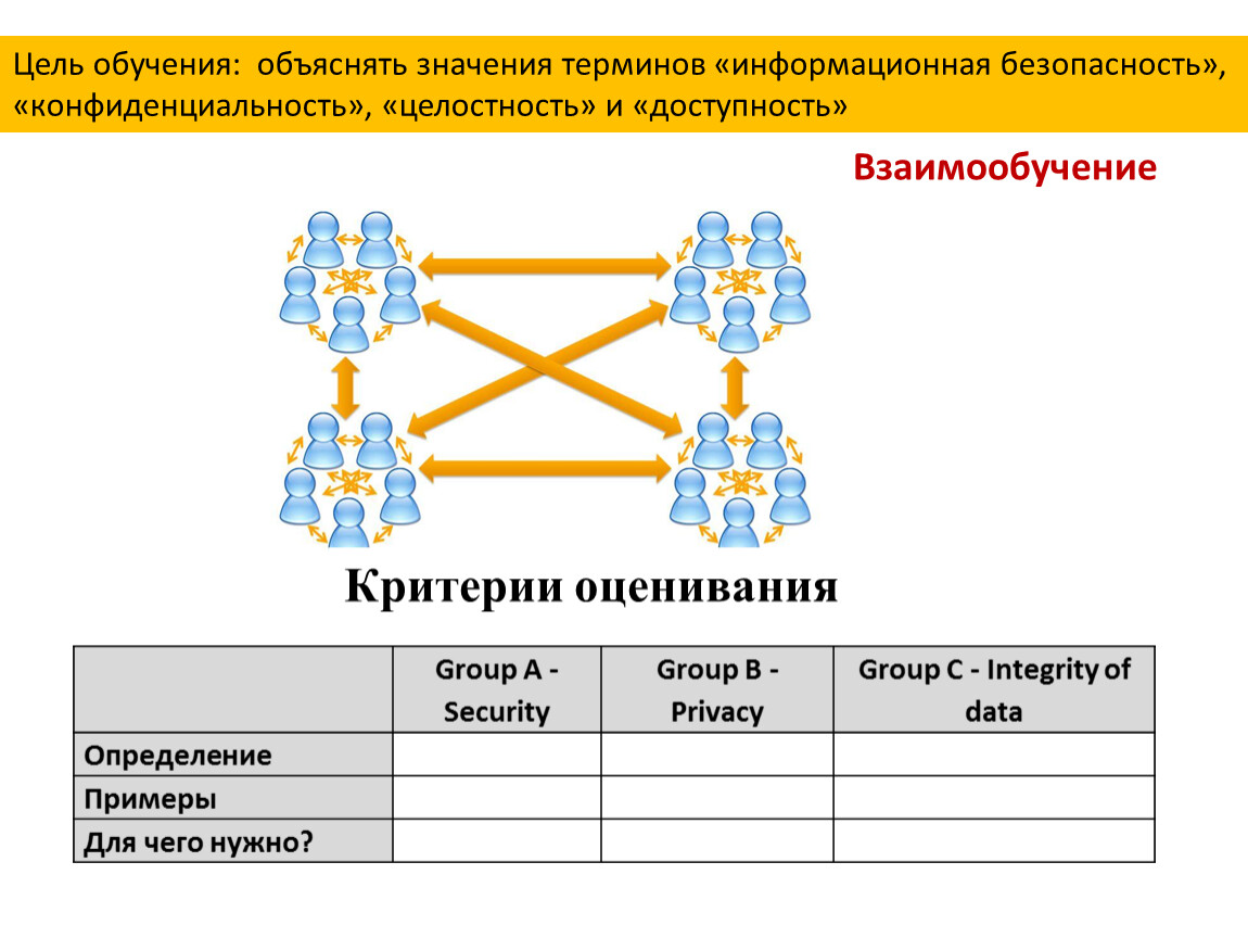 Цель обучения: объяснять значения терминов «информационная безопасность», «конфиденциальность», «целостность» и «доступность»