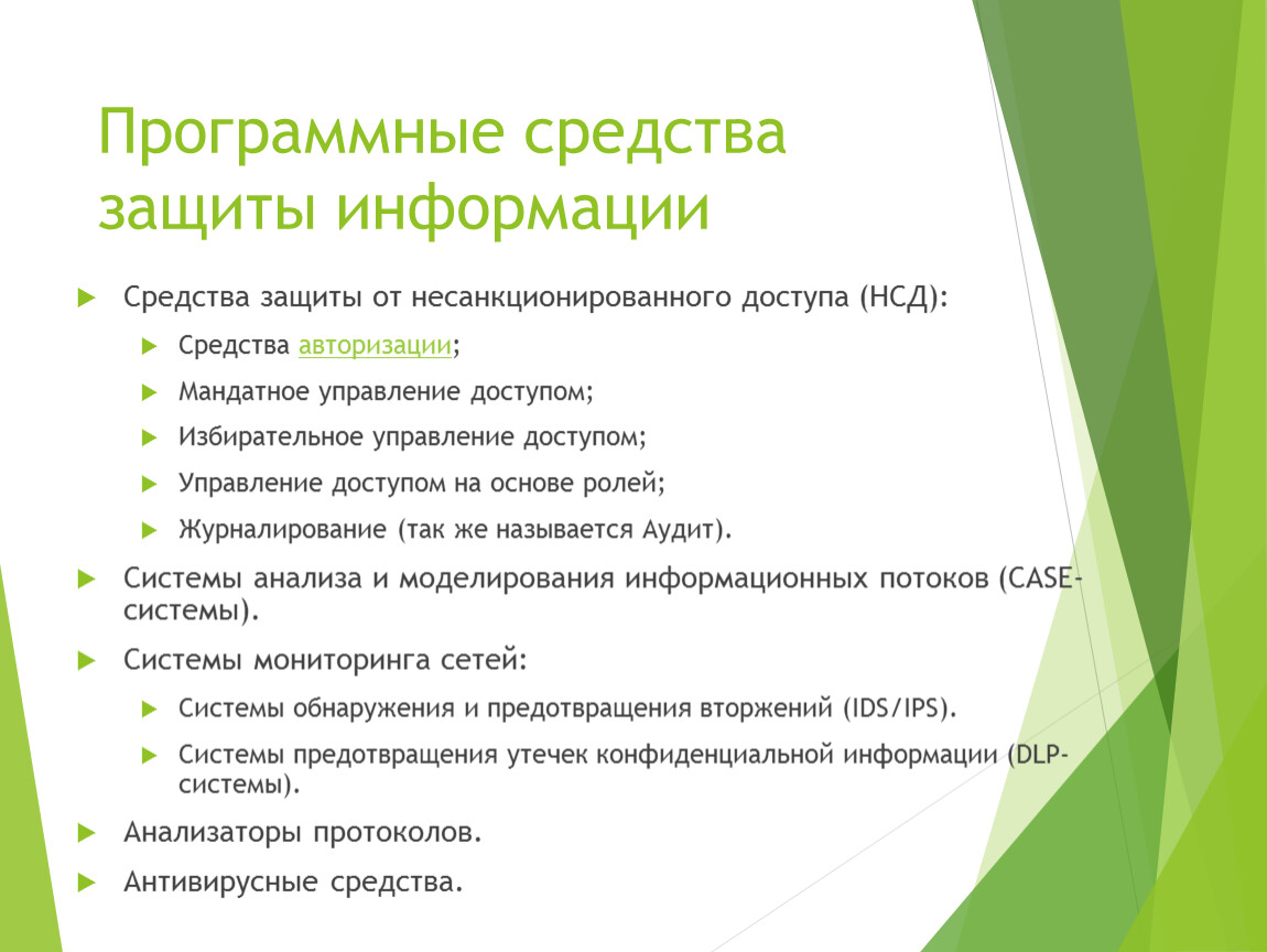 Средства защиты от несанкционированного доступа (НСД):