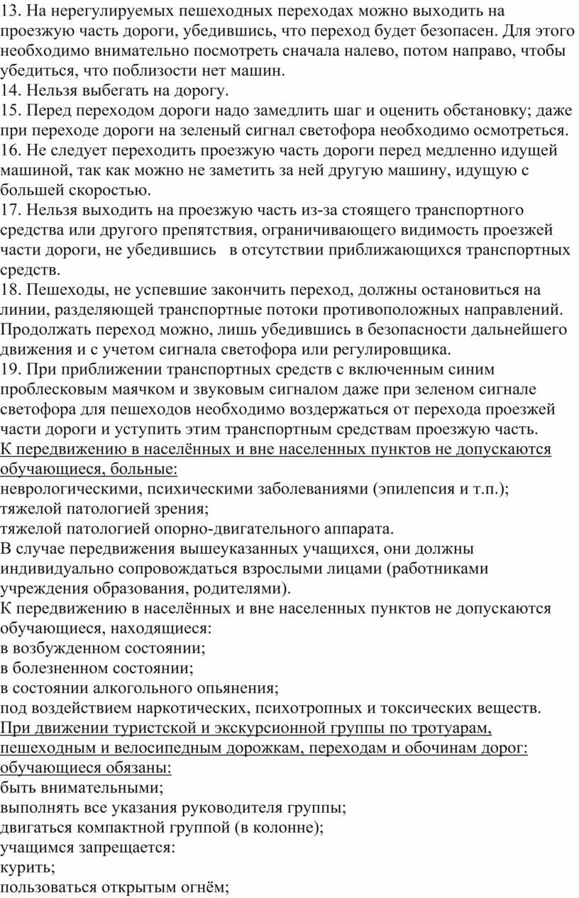 К передвижению в населённых и вне населенных пунктов не допускаются обучающиеся, больные: