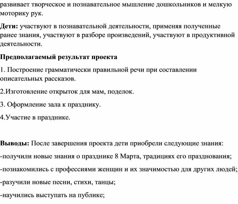 Выводы: После завершения проекта дети приобрели следующие знания: