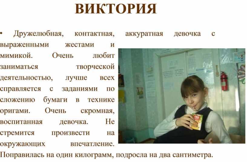 на окружающих впечатление. Поправилась на один килограмм, подросла на два