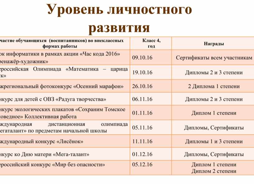 Уровень личностного развития
