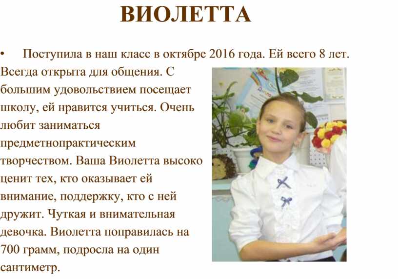 года. Ей всего 8 лет. Всегда открыта для общения. С большим удовольствием