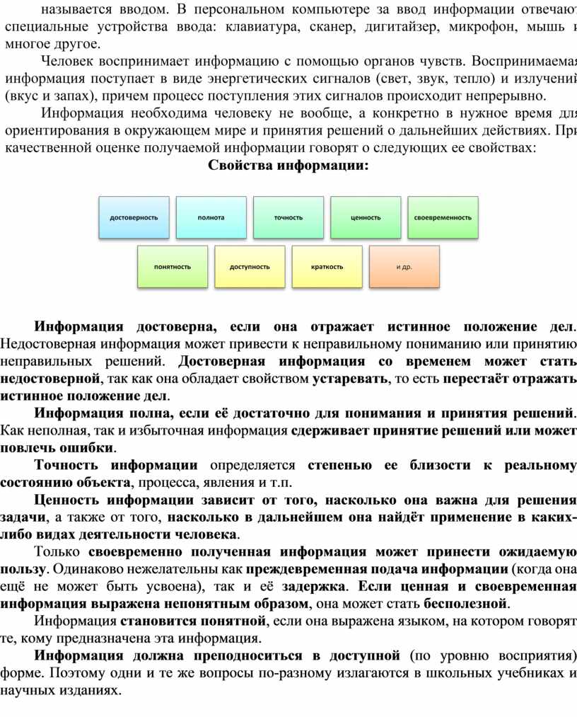 Свойства информации: