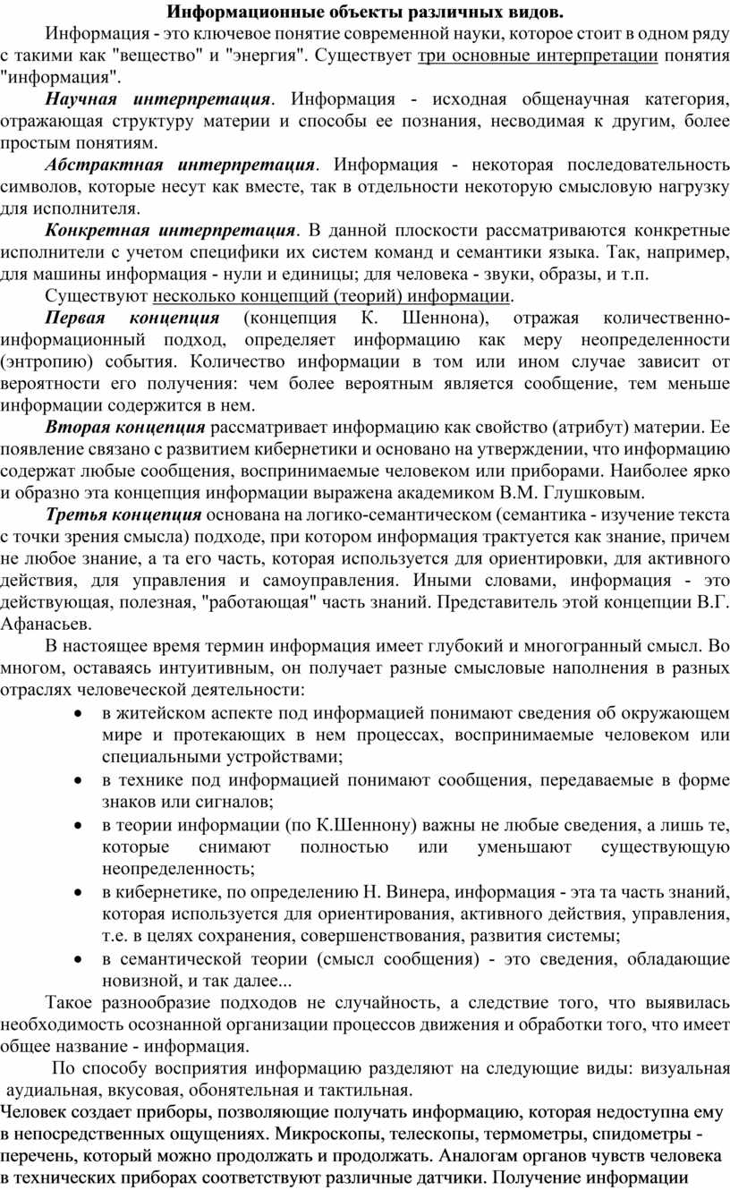 Информационные объекты различных видов.