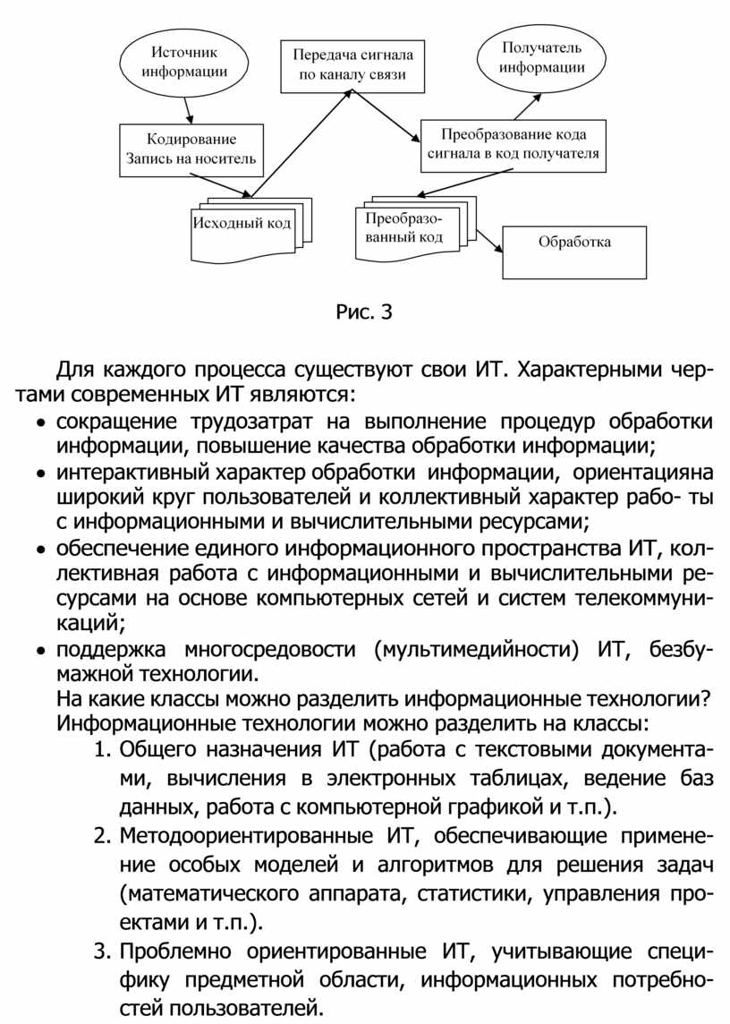 Для каждого процесса существуют свои ИТ. Характерными чер- тами современных ИТ являются: