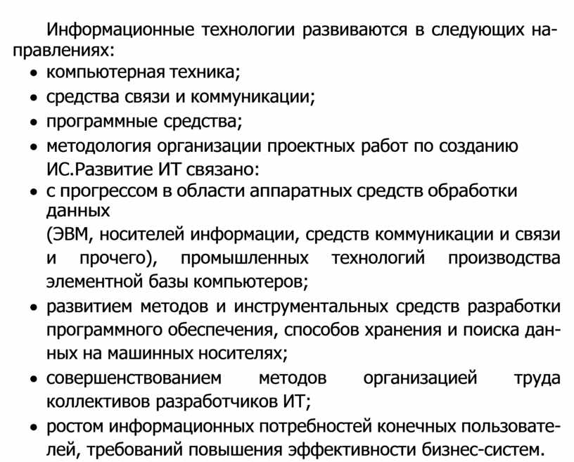 · методология организации проектных работ по созданию ИС. Развитие ИТ связано: