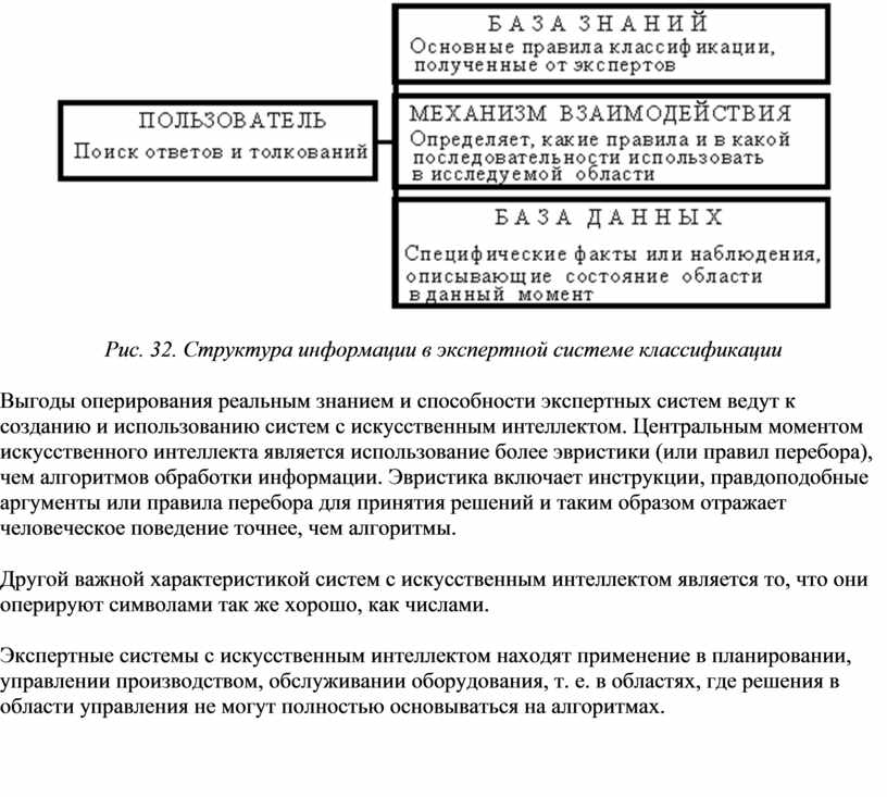 Пример общей структуры экспертной системы классификации на основе правил приведен на рис. 32.