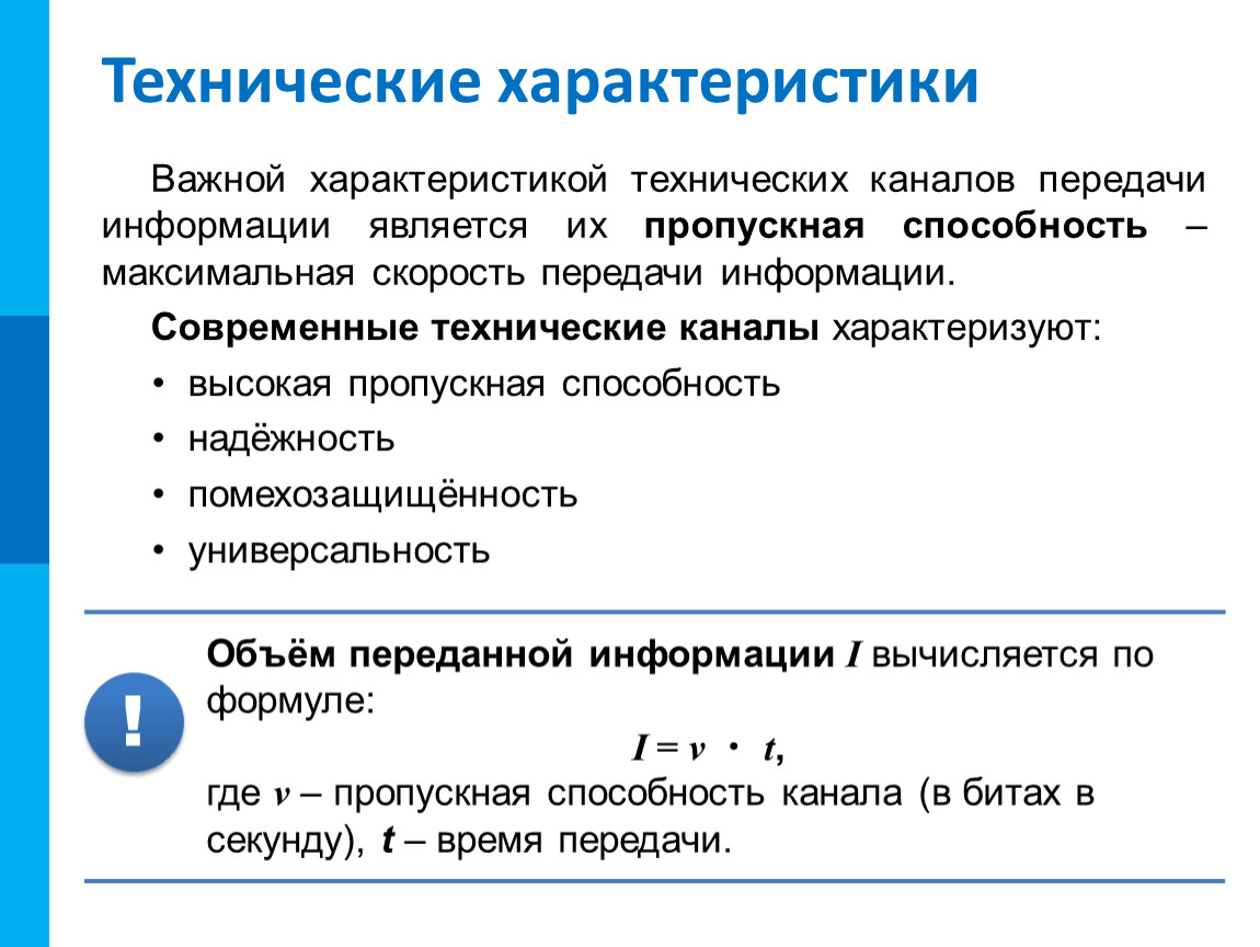 Важной характеристикой технических каналов передачи информации является их пропускная способность – максимальная скорость передачи информации.