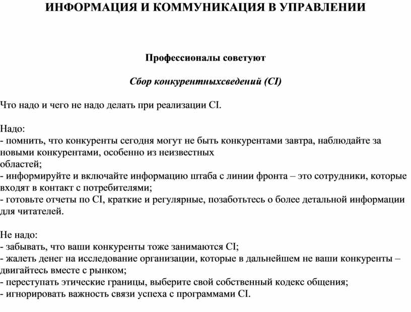 Сбор конкурентныхсведений (CI)