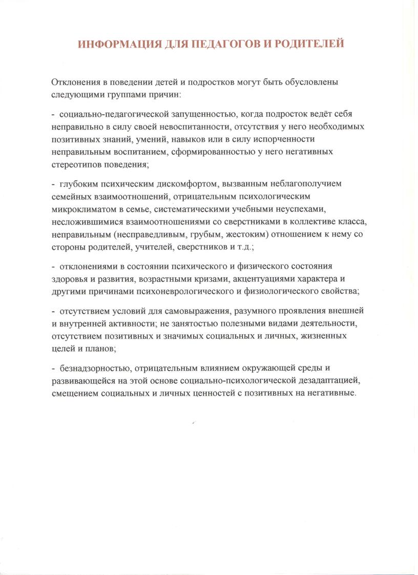 Отклонение в поведении подростков особенно бурно протекает в период формирования самостоятельности, идентичности в обществе и процессе социализации. Возникает резонный вопрос "Почему он так начинает себя вести?Что происходит с подростком? Могу ли я ему помочь?" Данная памятка предназначена для родителей и педагогов, раскрываются группы причин отклоняющегося поведения подросков.