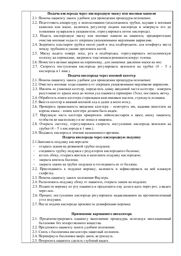 2. 2. Выполнение процедуры:Подача кислорода через кислородную маску или носовые канюли
