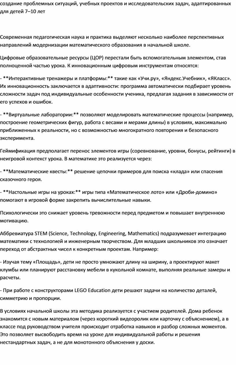 Современная педагогическая наука и практика выделяют несколько наиболее перспективных направлений модернизации математического образования в начальной школе.