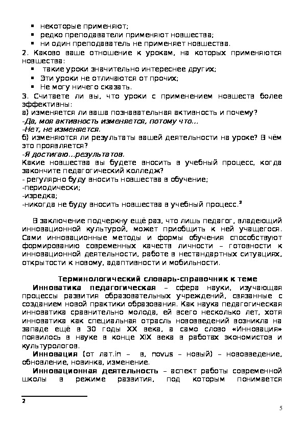 учащегося. В то же время хочу отметить, что инновационная