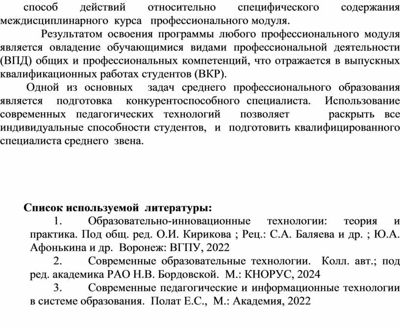 2. Современные образовательные технологии. Колл. авт.; под ред. академика РАО Н.В. Бордовской. М.: КНОРУС, 2024